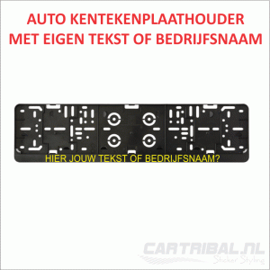 Ontwerp je eigen kentekenplaathouder bedrukt met je eigen tekst of bedrijfsnaam sticker zoals jij deze wenst.