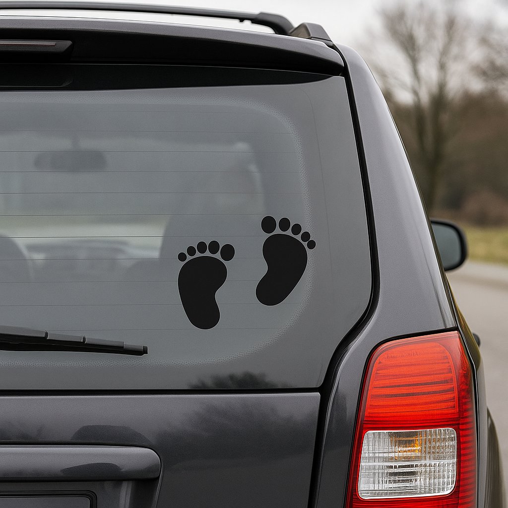 De sticker is gemaakt van hoogwaardig, weerbestendig vinyl en beschikbaar in meerdere kleuren. Dankzij het silhouet van twee kleine voetjes is de boodschap duidelijk én stijlvol. Eenvoudig zelf aan te brengen op glas, lak of kunststof – zonder luchtbellen of gedoe.
