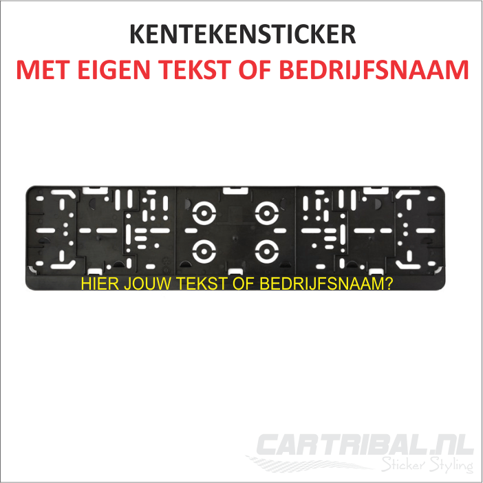 Ontwerp je eigen kentekenplaathouder sticker met je eigen tekst of bedrijfsnaam sticker zoals jij deze wenst.