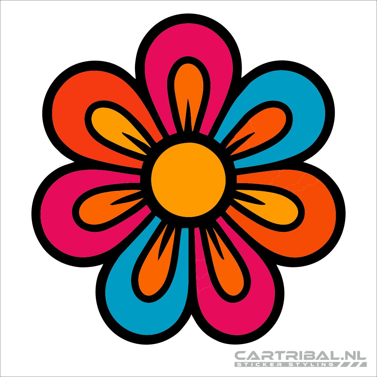 Laat je creativiteit los met deze multi color bloem sticker! Een explosie van kleur en vrolijkheid – precies wat jouw auto, scooter, camper, laptop of muur nodig heeft. Met levendige tinten oranje, roze, blauw en geel, is deze bloem allesbehalve saai. Dit is hét statement voor wie durft op te vallen.