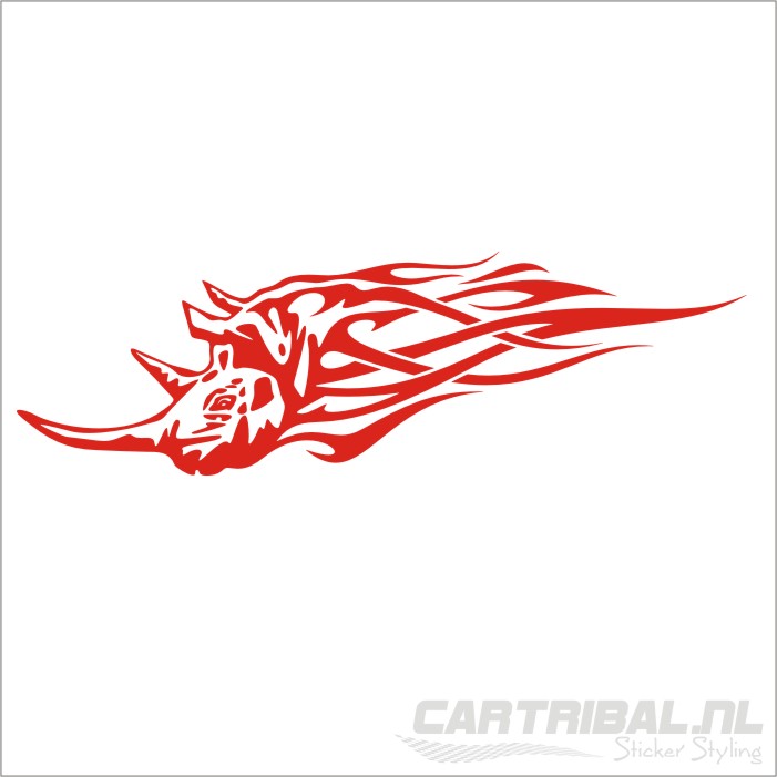 De neushoorn staat symbool voor puur geweld, onverzettelijkheid en natuurlijke dominantie. In deze variant zie je hem niet alleen stormen, maar ook branden – letterlijk. De vlammen die vanuit zijn lijf exploderen geven deze sticker een ongekende dynamiek. Alsof hij net uit de hel is losgebroken om zijn plek op jouw motorkap of zijpaneel op te eisen.